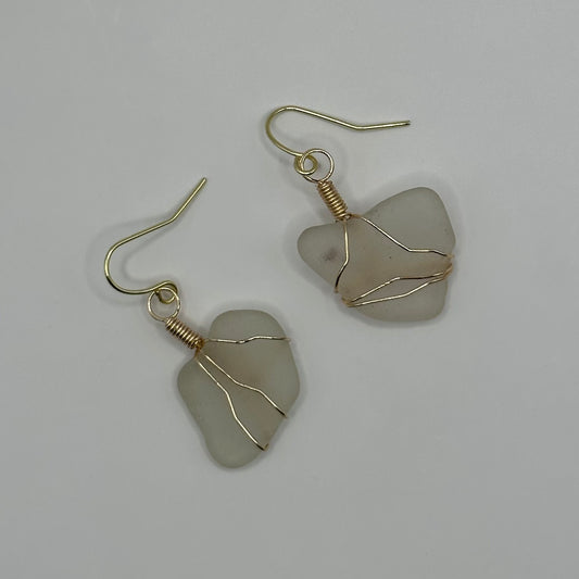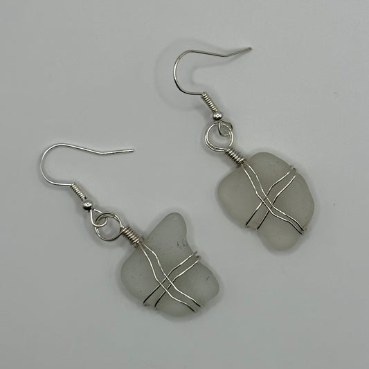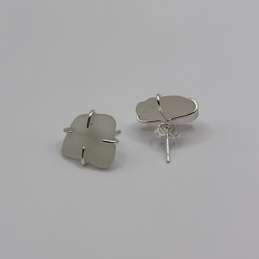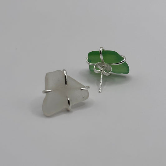 Sterling Silver Green / Clear Seaglass Studded Earrings