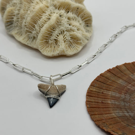 Shark Tooth on Silver Oval Link Chain Necklace