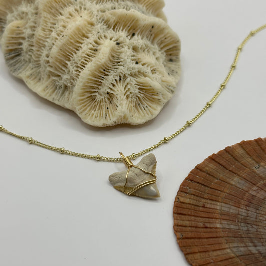 Shark Tooth on Gold Dot Link Chain Necklace