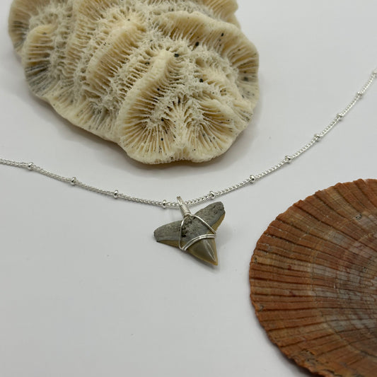 Shark Tooth on Silver Dot Link Chain Necklace