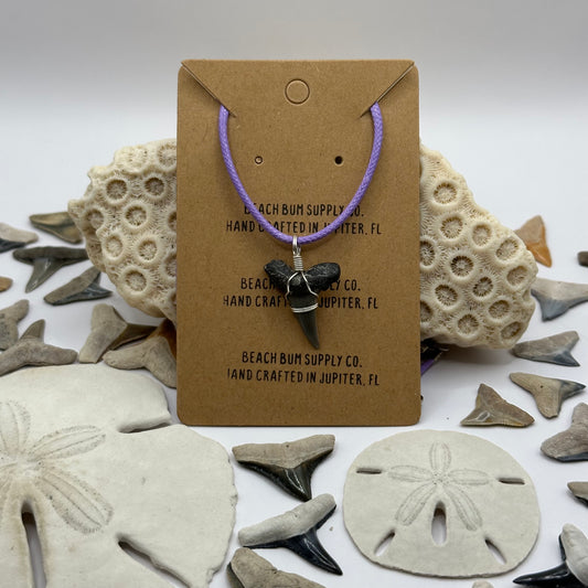 Shark Tooth on Purple Leather Necklace