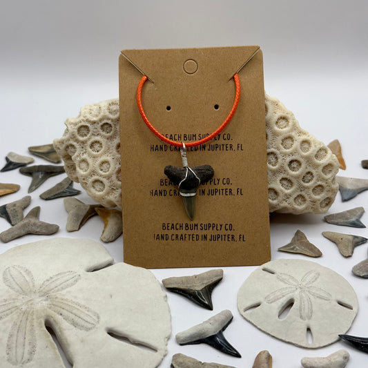 Shark Tooth on Orange Leather Necklace