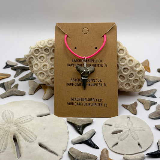 Shark Tooth on Pink Leather Necklace